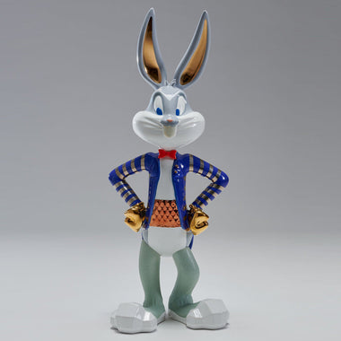 Limited edition The Shiny Bugs sculpture, made of ceramic with precious metal details. Depicting the iconic Bugs Bunny with a swaggering and stylish attitude, this limited edition features stunningly detailed detailing and brilliant color finishes. Perfect for collectors, cinema and art admirers..