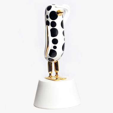 Hopebird stands proud and tall as it gazes towards the horizon and invites us to reflect on the importance of looking positively at what the future will bring. This tabletop sculpture is made out of fine ceramic and hand-painted.